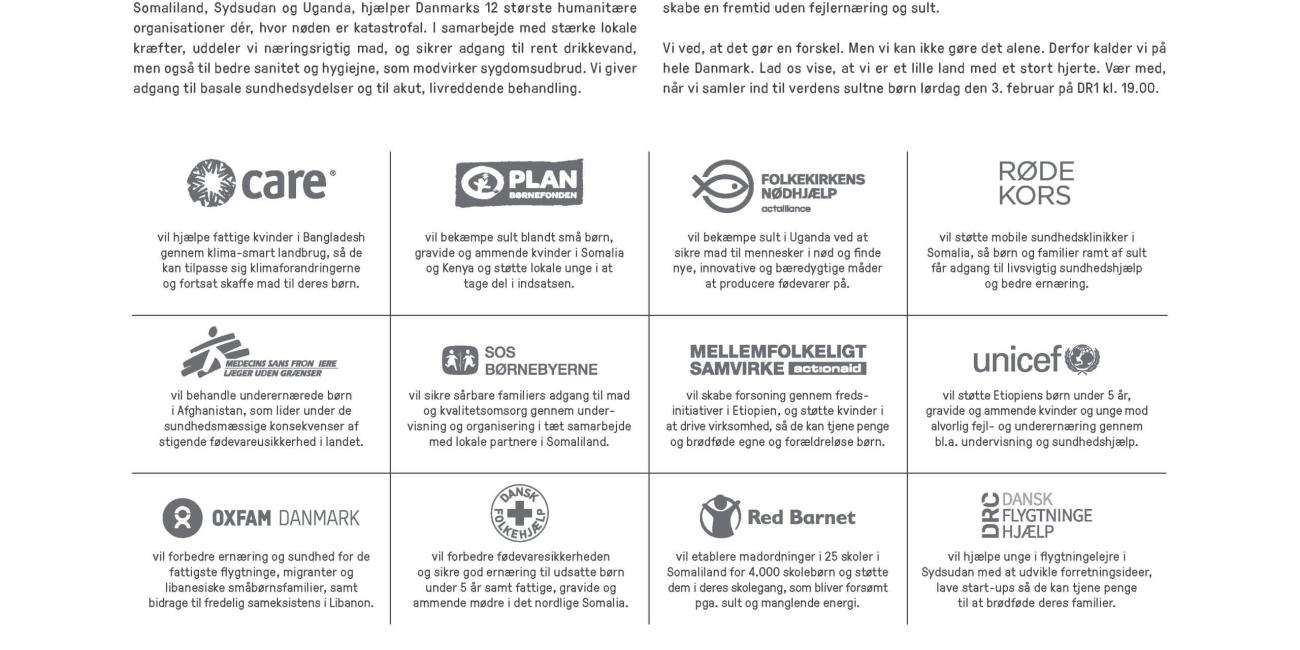 Join us when the whole of Denmark collects for the world's hungry children on Saturday 3 February on DR1 at 19.00.