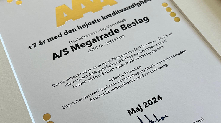 We are pleased to announce that Megatrade has achieved the prestigious AAA credit rating from Dun & Bradstreet (D&B), one of the world's leading providers of business information. This top rating is proof of our strong financial stability and commitment to quality and reliability in all our operations.